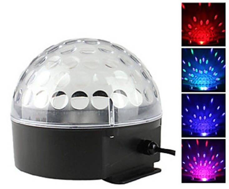 LED диско шар Crystal magic ball имеет цветовую модель RGB (Red, Green, Blue) и режим стробоскоп – цветомузыка работает в 3 цветах, в зависимости от частоты воспроизведения: красный – низкие частоты (до 200Гц), зелёный ― средние частоты (от 800 до 3500 Гц) и синий — частоты выше 3500 Гц.